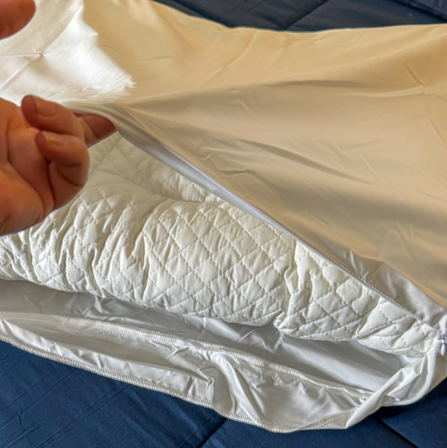 It keeps your shoulders from moving and lets you lift the lower part of the pillow to adjust the height, helping you maintain the ideal sleeping position.